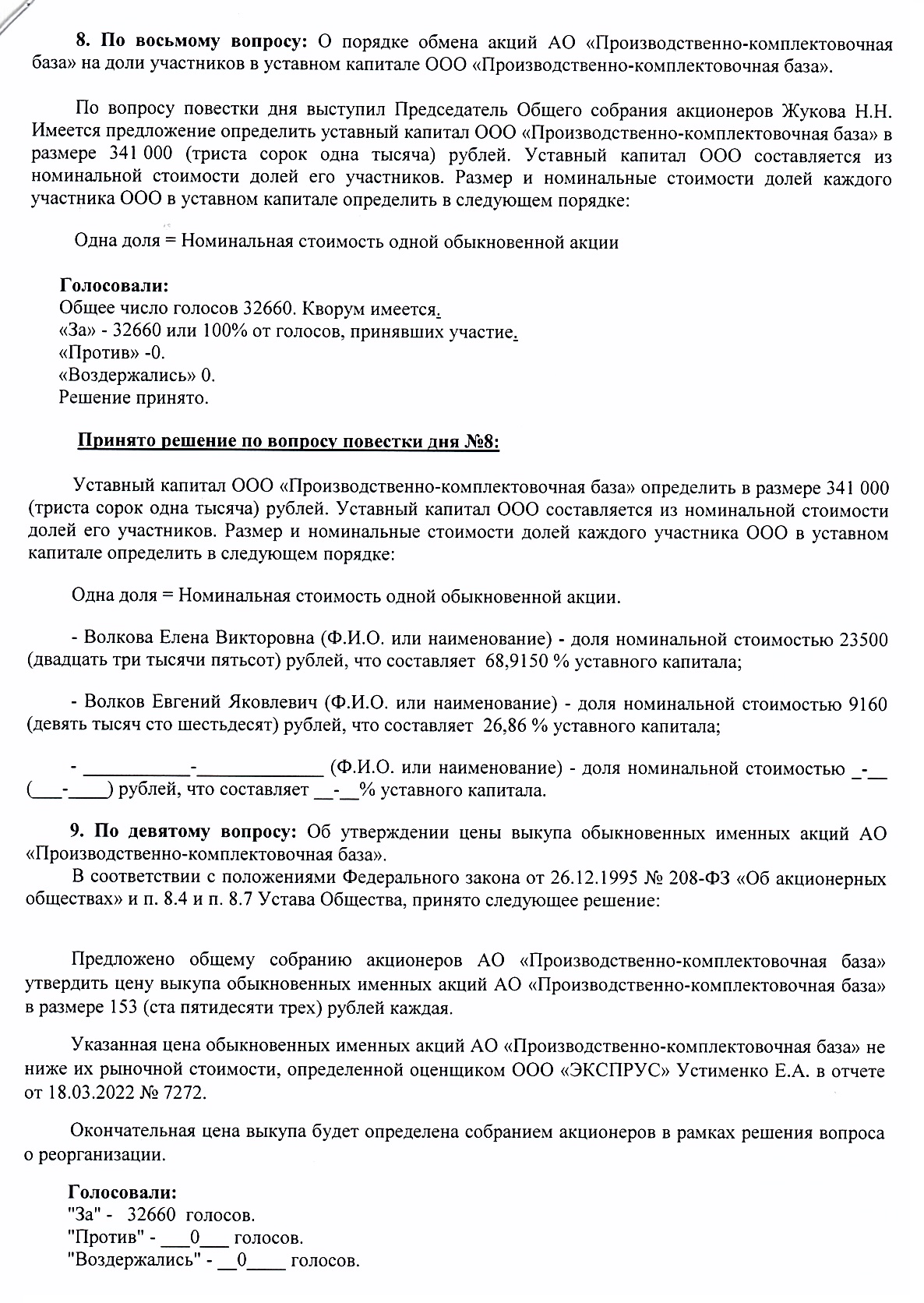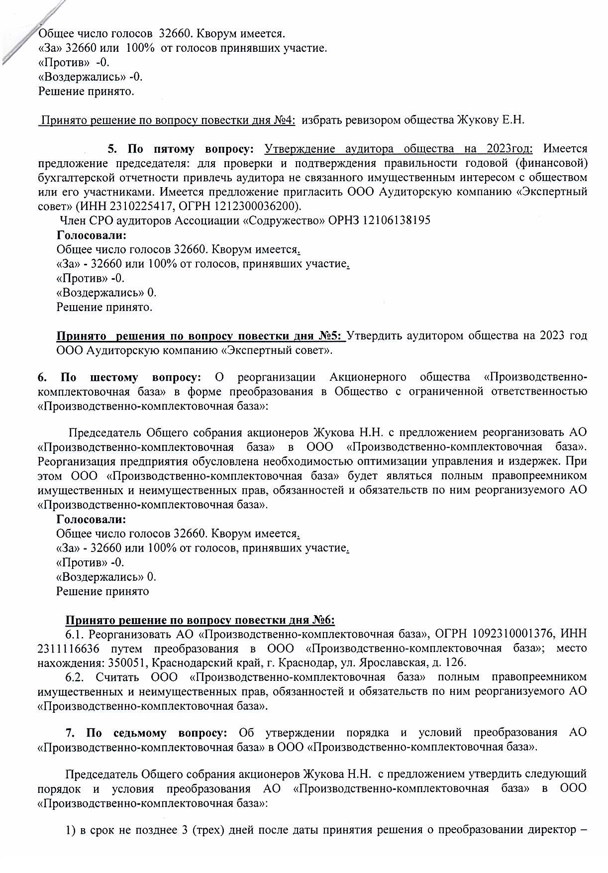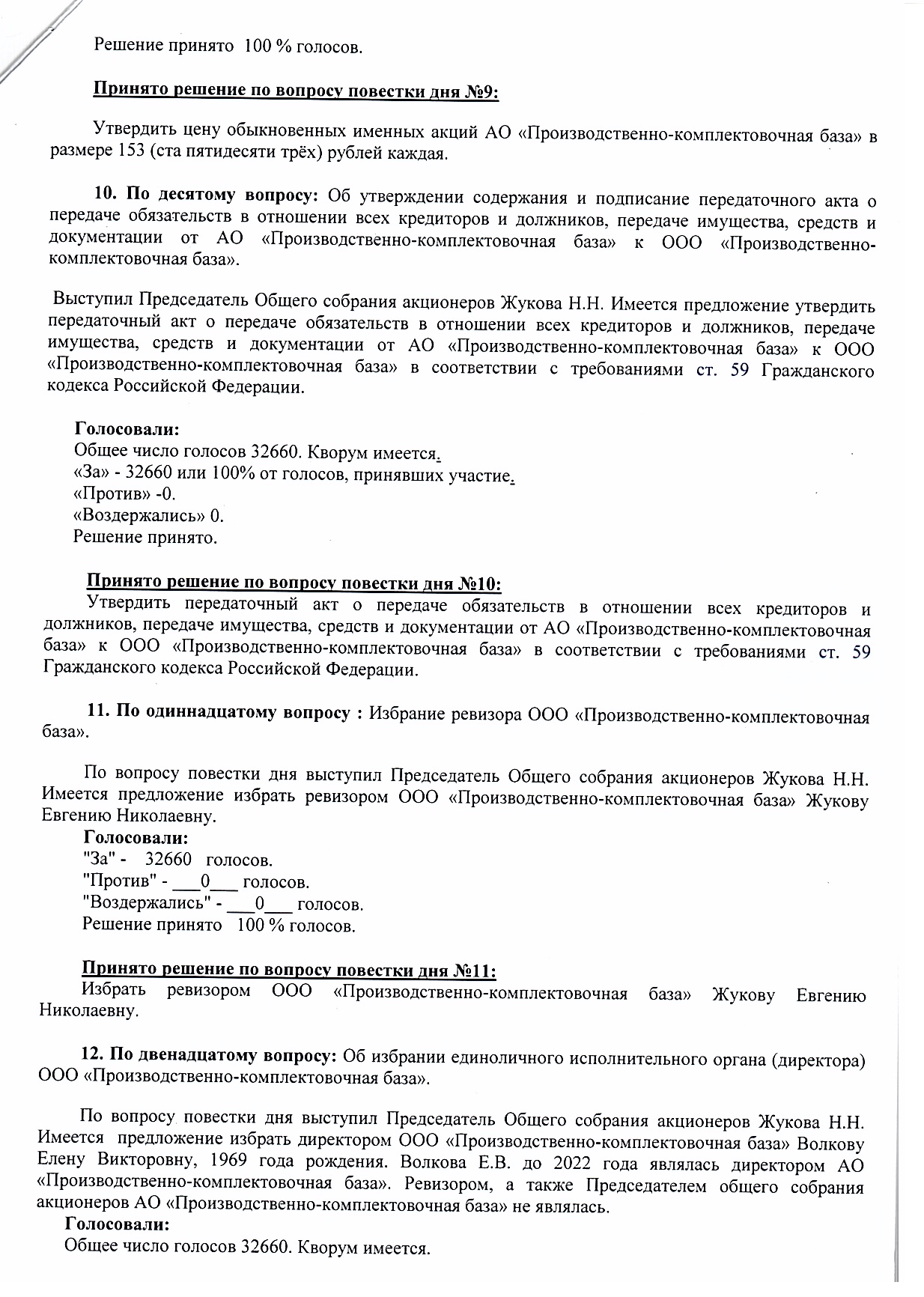 Протокол годового общего собрания акционеров АО «ПКБ» от 30.05.2022 г.