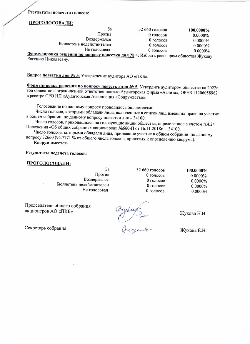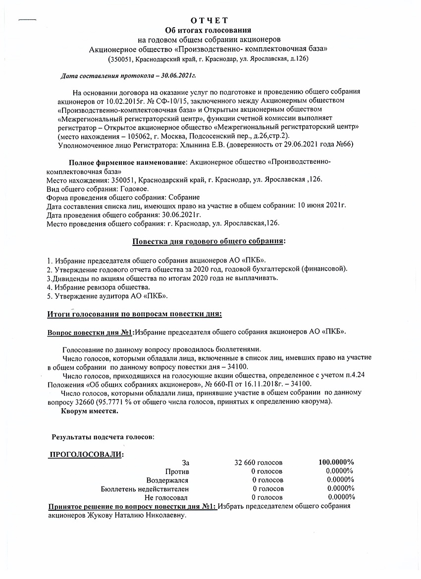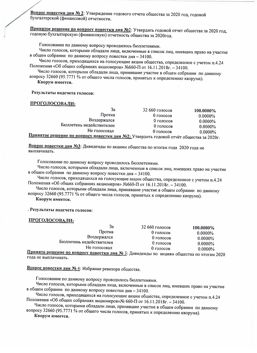 Отчёт об итогах голосования на годовом общем собрании акционеров от 30.06.2021 г.